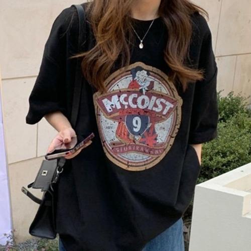 [엄지척]여성 프린팅 코튼 오버핏 반팔티_19613053_667501
