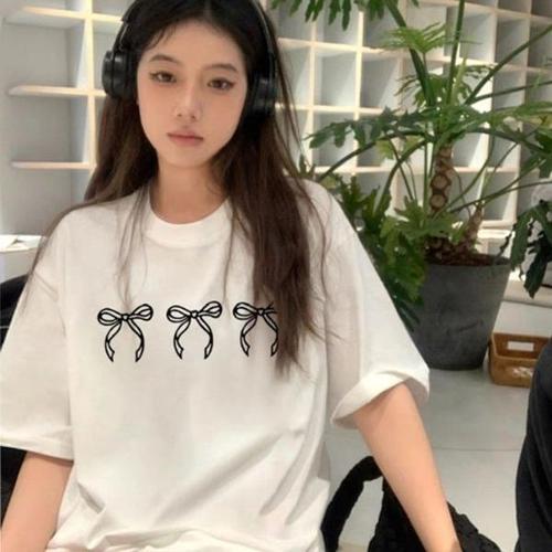 [엄지척]여성 리본 프린팅 귀여운 반팔 티셔츠 여자 반팔티_19612736_667501