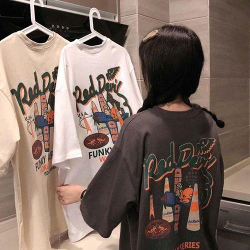 [에이치플러스몰]여성 유니크 디자인 트렌디 데일리 티셔츠 프린팅 오버핏 반팔티