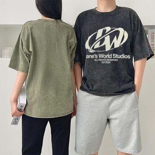 [에이치플러스몰]남녀공용 티셔츠 커플 데일리 유니크 디자인 월드 피그먼트 프린팅 반팔티