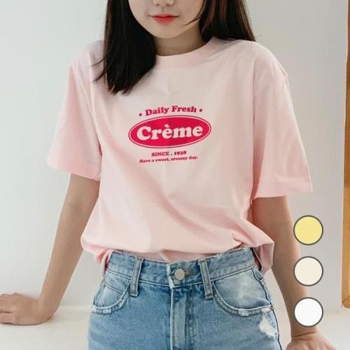 [험블스튜디오][험블스튜디오] 크림 프린팅티 오버핏 라운드넥 여름반팔티 (7035803)
