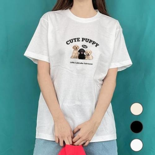 [험블스튜디오][험블스튜디오] 큐트퍼피 프린팅 기본 라운드 여름반팔티 (7992691)