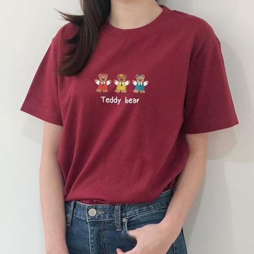 [험블스튜디오][험블스튜디오] 테디베어 프린팅 로고 루즈핏반팔티 버건디 (5831964)