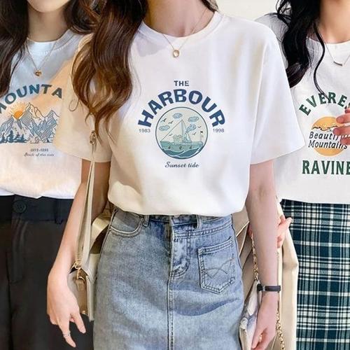 [엄지척]여성 면 프린팅 레터링 여름 흰 반팔 티 셔츠_19610899_667501