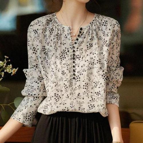[셀러허브_여성트랜드패션]Rly 여성 간절기 긴팔 셔츠 잔꽃 플라워 프린팅 블라