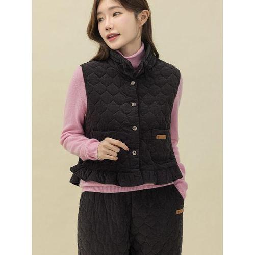 [행복여] 미즈 프릴 퀼팅 누빔 패딩 조끼