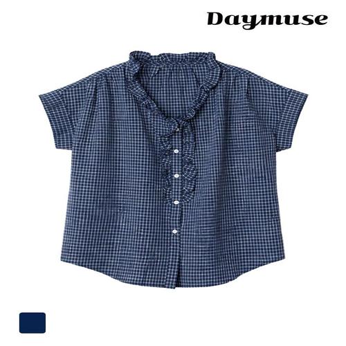 [모어오브](N) 레디 반팔 셔츠 프릴 체크 탑