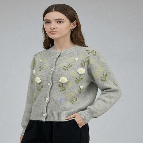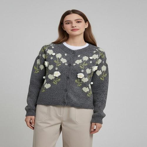 여성가디건 사계절 니트 로즈 꽃 니트가디건 GY128CC