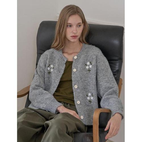 울 그랜드 플라워자수 니트 가디건 (one color)