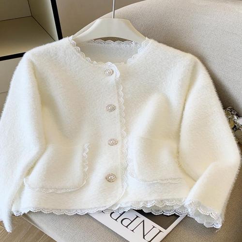 Skyciky 게으르고 부드러운 고급 자수 꽃 문양 앵커색 니트 가디건 스웨터 외투 SM01