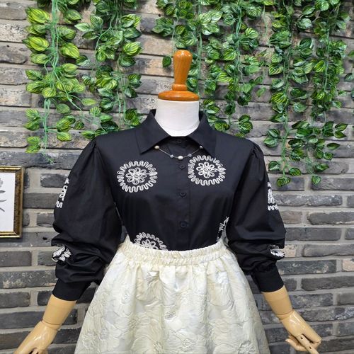퐁당 / 플라워 라운드 자수 셔츠 카라 블라우스