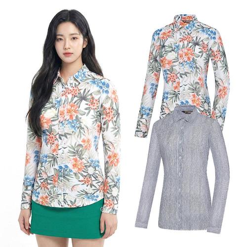 [비티알]비티알 여성 봄 플라워 패턴 스트라이프 롱기장 골프 셔츠 BSC581SH3W