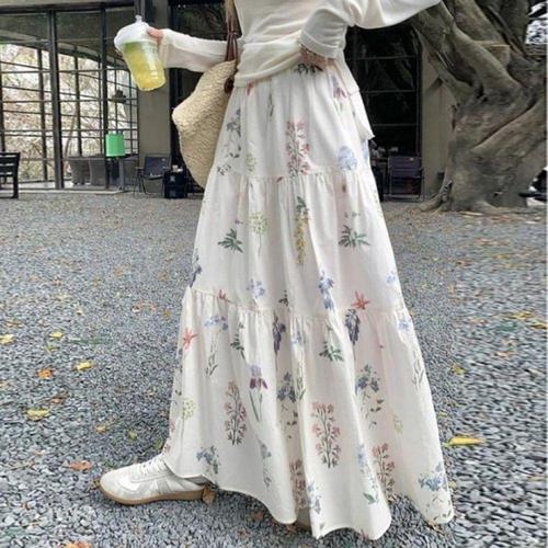 [오너클랜]인기상품 플라워패턴 하이웨스트 롱 스커트 여성 봄여름 A라인 밴딩치마 [WFLLK0F_260305]