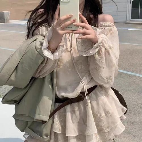 [다잇템][다잇템] 여자 프릴 볼드숄더 플라워초커 튜브탑 미니원피스_16034547_588872