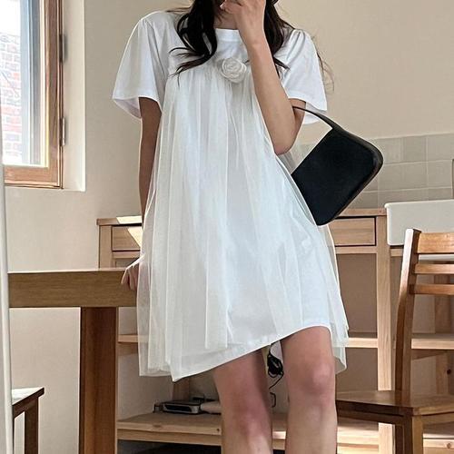 마켓에이 여성용 크로스 플라워 반팔 미니 원피스 T25SS3-A1837