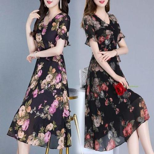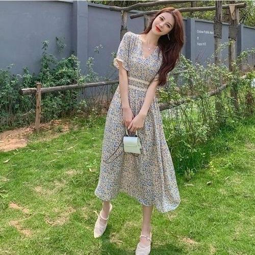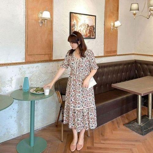 [에이치플러스몰]쉬폰 원피스 추천 패턴 롱 꾸안꾸 플라워 러블리 반팔