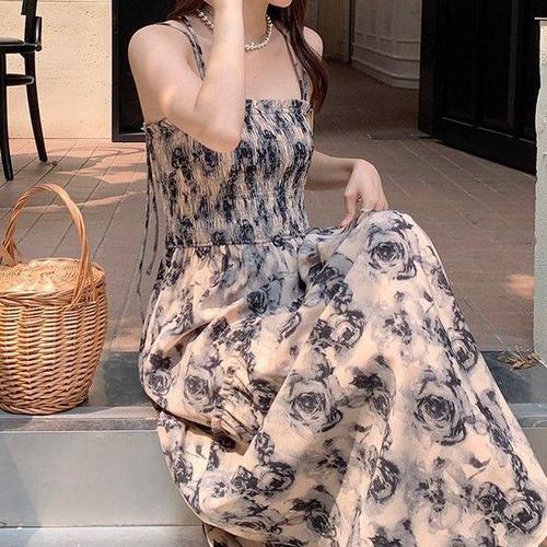 휴양지 여름 원피스 롱 반팔 쉬폰 나시 플라워 랩 바캉스룩 허니문