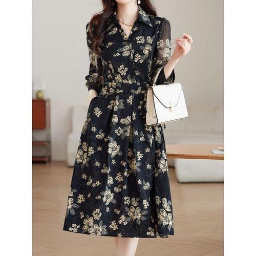 [에이치플러스몰]롱원피스 플라워 캐주얼 여자 쉬폰 필수템 봄 하객룩