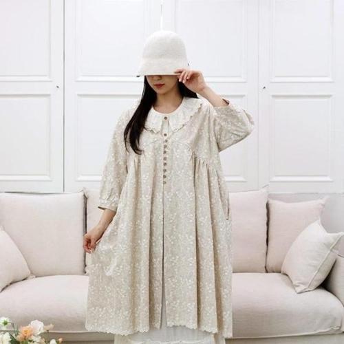 [브이와이][VY] 여자 크로쉐 마원단 펌킨 레이스 플라워 SS 내추럴 롱원피스_17069572_588847
