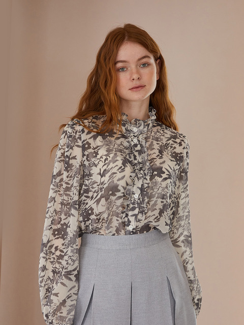 [까이에] [까이지엔느] 플라워 패턴 프릴 쉬폰 블라우스