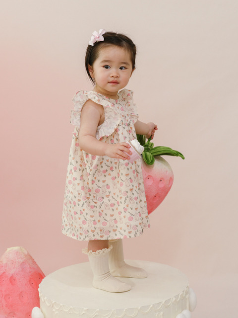 [하프클럽/]아동용 반팔 원피스 핑크 실내복 디자인 M 어린이 여름 의류