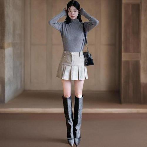 맵시난다 여성 데일리룩 플레어 밴딩 A라인 잔주름 니트 미니 플리츠 스커트 U351