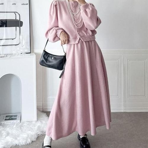 [신상오픈런]|KSD230F|퍼프 긴팔 라운드넥 플레어 겨울치마 미시룩 세트_19607635_597559