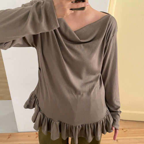 헤이미니 쁘띠 프릴 골지 기모 플레어 티셔츠