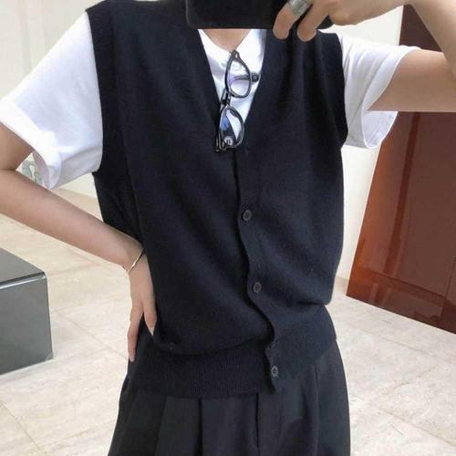 모던 데일리 디자인 레이어드 브이넥 니트 단추 조끼 WE6CE42