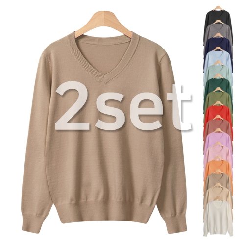☆2종세트☆ [유니제이] 레피니 데일리 브이넥 니트티