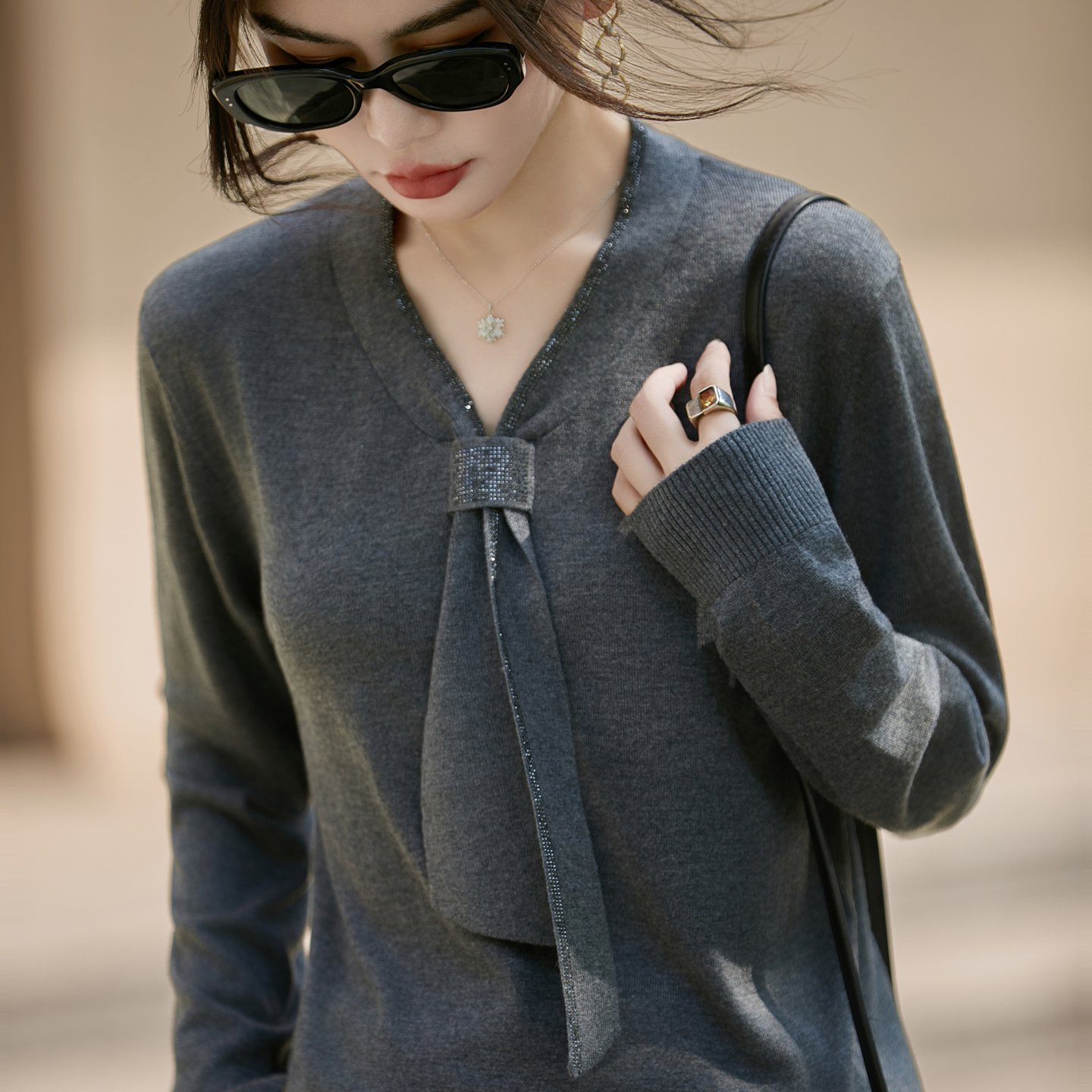 TEMU 여성용 패션 V넥 리본 장식 스웨터, 봄 가을 겨울 패션 여성복, 다용도 편안한 여성 상의