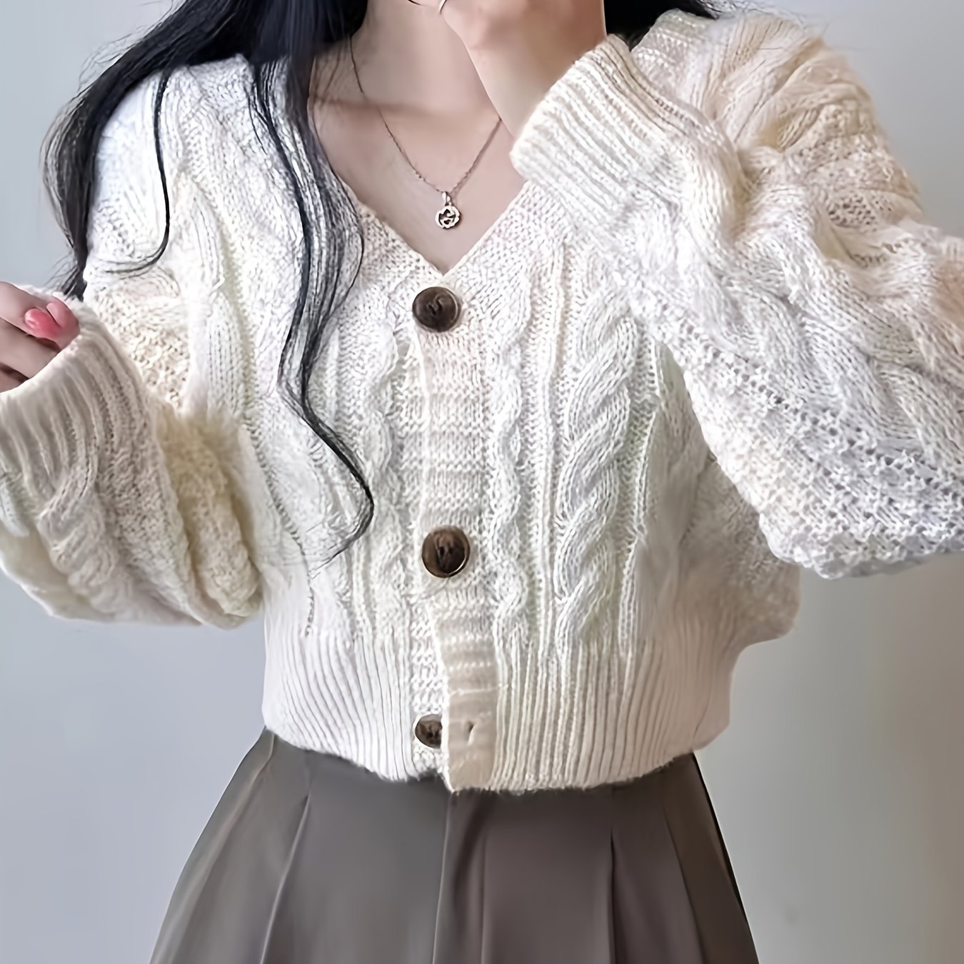 TEMU 한국식 쓰리버튼 V넥 카디건 빈티지 패턴 긴소매 크롭 스웨터 코트