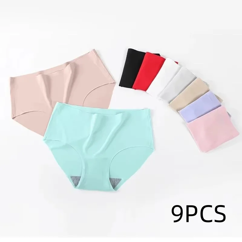 9 Pcs 여성을위한 원활한 얼음 실크 팬티 통기성 부드러운 컴포트, 솔리드 컬러 십대 소녀 팬티, 원피스 디자인