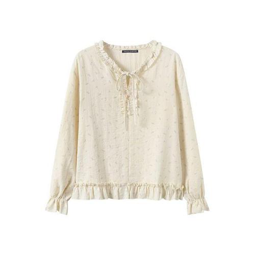 [미니멈 에브리데이]프릴 리본넥 플로럴 패턴 긴팔 블라우스 (EC1BA021D)