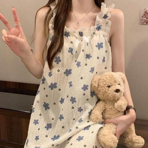 [셀러허브_여성트랜드패션]ONM 여성용 플로럴 프린트 파자마 캡내장 원피스 여름