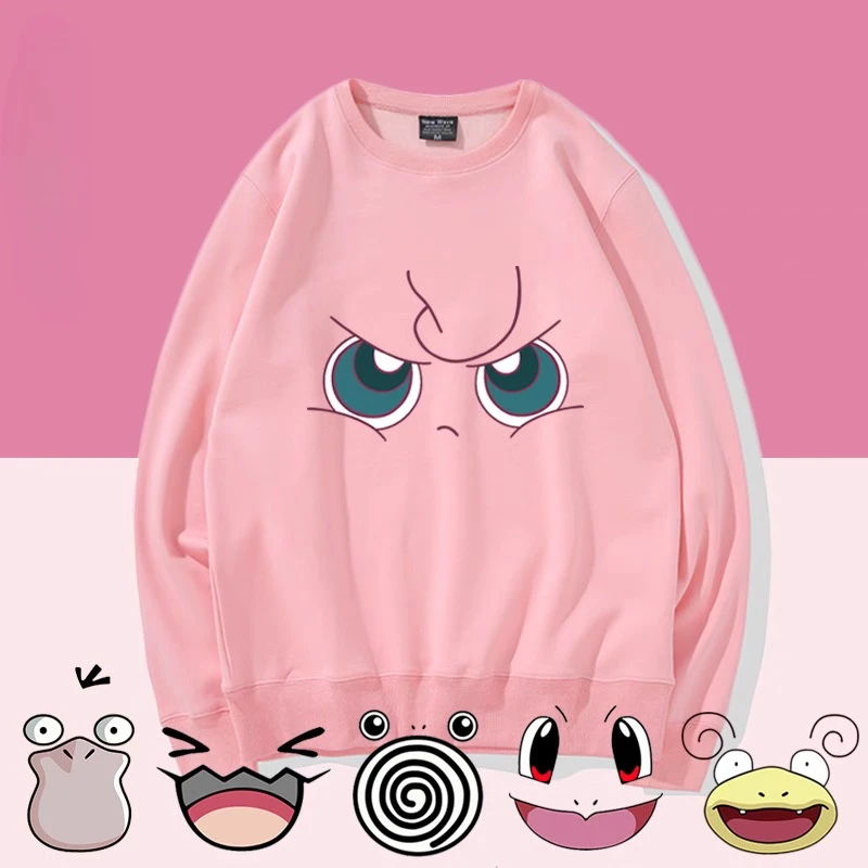 재미 있은 표현 포켓몬 피카추 귀여운 프린트 커플 크루 넥 스웨터 남성과 여성의 봄, 가을 다목적 루즈