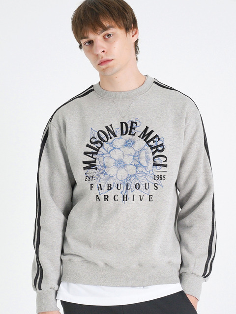 [패블러스아카이브] UNISEX 플라워 아치 라인 숄더 헤비테리 맨투맨 멜란그레이(FCE4TS652K)