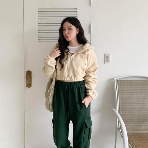 [다잇템]여자 크롭점퍼 엷은 플리스 덤블 후드집업 (11150854A)