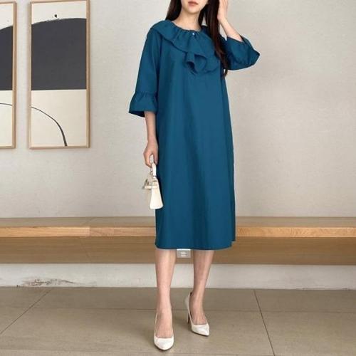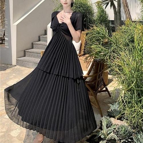 [신상오픈런]|KDO4916|브프리 모임 썸머 플리츠 넥 프릴장식 여성 긴원피스_18170958_597559