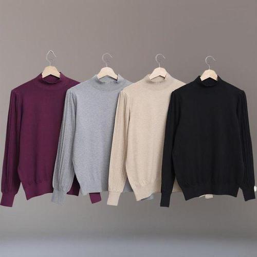 [신상오픈런]여성용 가을 하객 패션 플리츠 퍼프 소매 긴팔 터틀넥 기본 니트