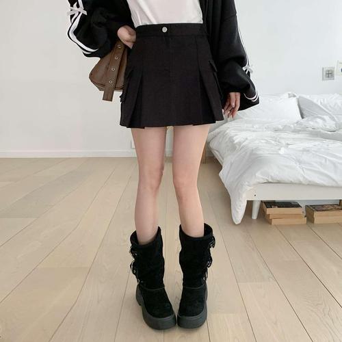 테니스스커트 플리츠 모직 A라인 겨울 미니스커트 4컬러
