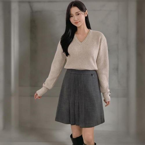 여자 플리츠 A라인 겨울 데이트룩 러블리 미니스커트