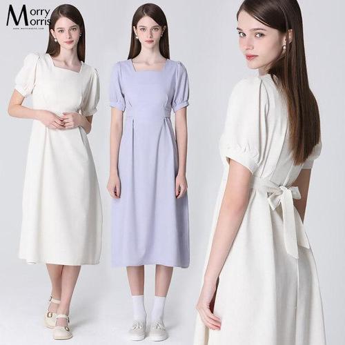 TEMU 라운드넥 반팔 플로우 솔리드 컬러 여성 드레스 루즈 미디 스커트