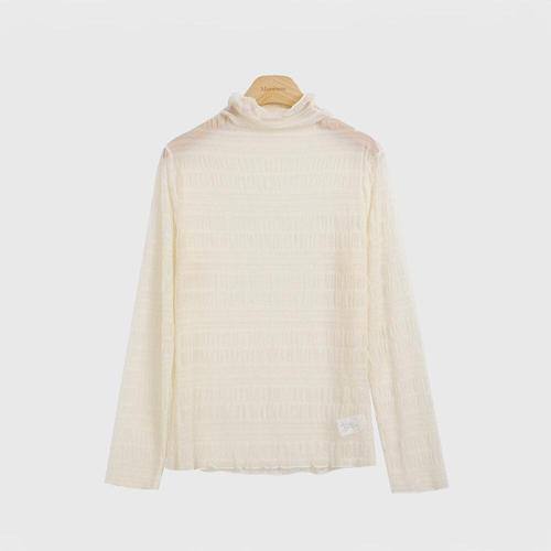 [모어렌][모어렌] [MADE] 번로즈 플리츠 시스루 반폴라 블라우스 [tbs0504]