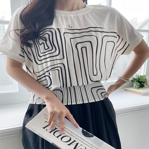 [신상오픈런]여성 여름 라운드넥 플리츠 반팔 티셔츠 블라우스