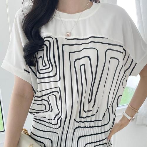 |KSH3FA7|여성 여름 라운드넥 플리츠 반팔 티셔츠 블라우스