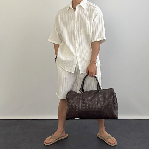 여름 냉장고 물결 주름 반팔 세트 남자 긴바지 반바지 트레이닝룩 오버핏 시원한 데일리룩 휴양지룩