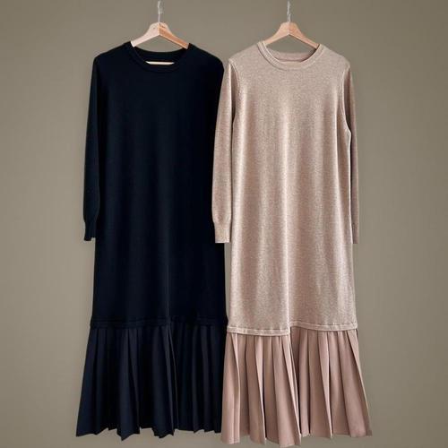 [미라클세븐]여성 플리츠 니트 롱원피스 겨울 등원 패션