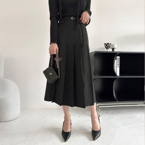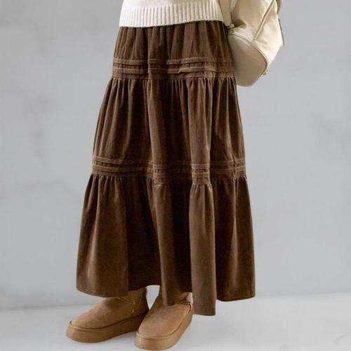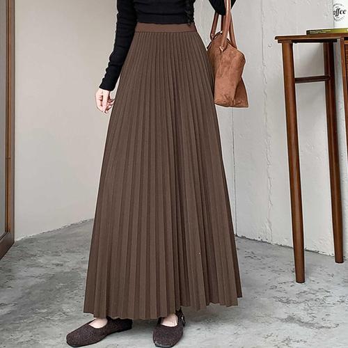 [신상오픈런]여성 가을 스타일 플리츠 뒷밴딩 비스코스 롱스커트