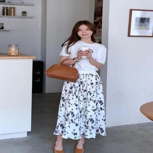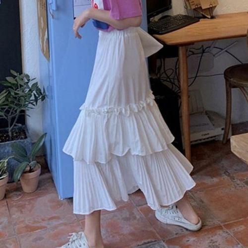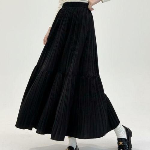[옷자락]여성 사계절용 밴딩 플리츠 롱스커트